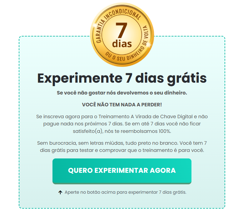 Por APENAS R$49,90 você tem acesso ao Treinamento A Virada de Chave Digital que te ensina 6 formas práticas e simples de fazer dinheiro pela internet, mesmo que você não saiba nada.