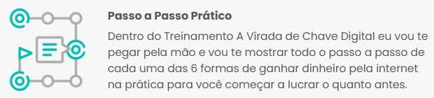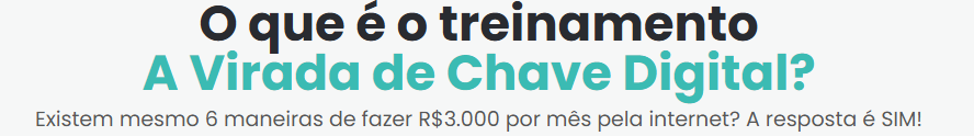 Por APENAS R$49,90 você tem acesso ao Treinamento A Virada de Chave Digital que te ensina 6 formas práticas e simples de fazer dinheiro pela internet, mesmo que você não saiba nada.